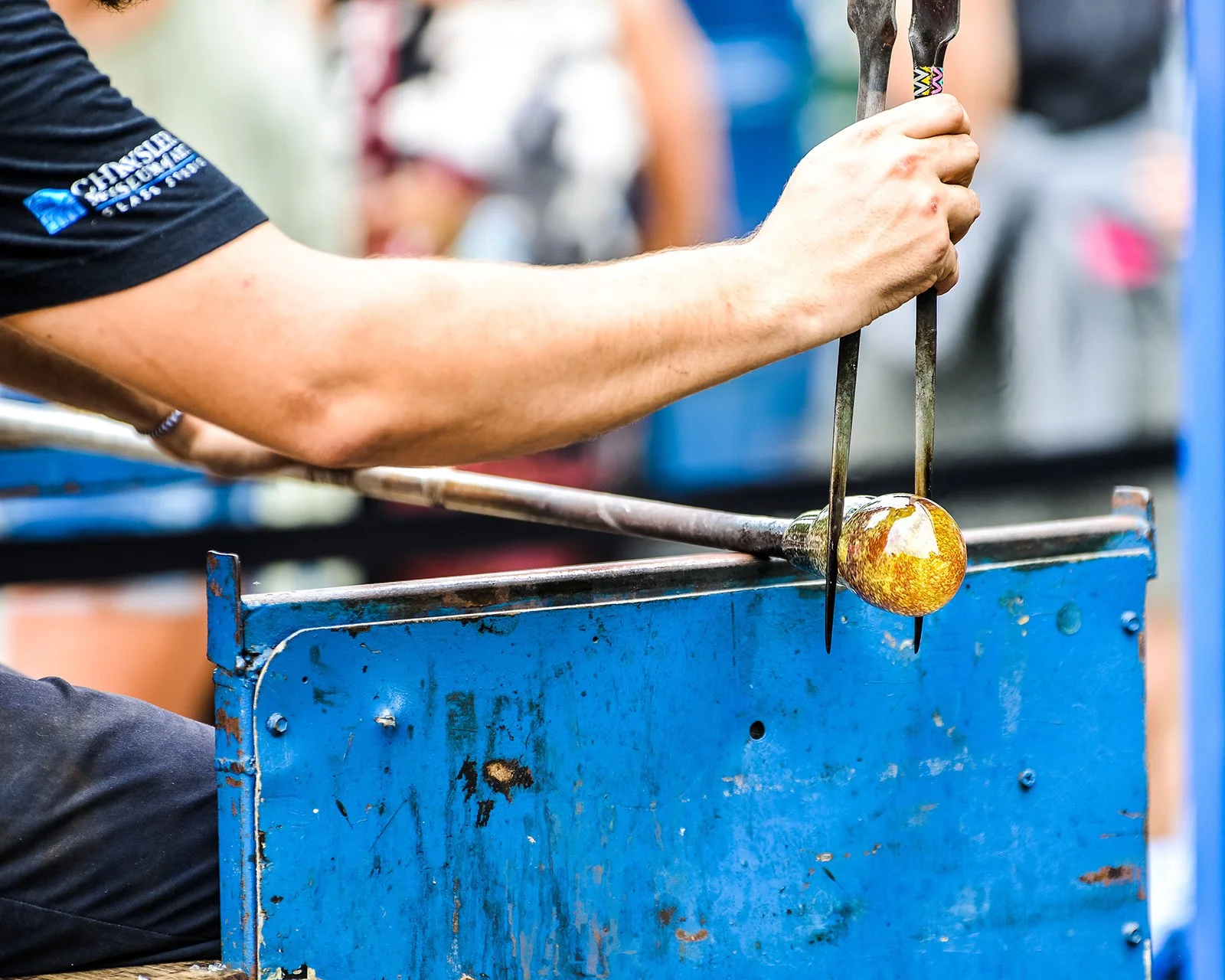 The Chrysler Museum of Art Glass Studio Mobile Unit brings the drama of hot glass directly to Main Street Center. Watch master glass artists gather molten glass from the furnace, shape it with breath and fire, and transform it into luminous works of art before your eyes. This rare, up-close experience reveals both the technical precision and artistry behind glassmaking — an unforgettable highlight of Village Arts Day.